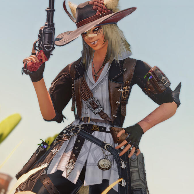 Learning Three century's worth of Gunslinger Skill and technique from an indevidual knwon as Vera Amira a Female Hrothgar and current Master of The Flaring Shards. Becoming a mercenary gunslinger he is Hoping to pay off a debt both him and Ari had collected. One day both him and his Mentor gets hired for their biggest job yet. Assistance with the war in Bozja. This was an event planned to only last 4-6 months at most but instead lasted 2 years for Eru